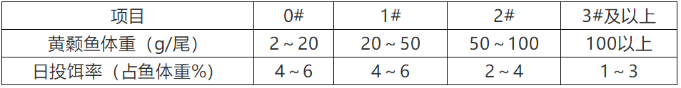 ? 根據黃顙魚規格及數量,參考投餌參考表中推算投餌量,再根據天氣、水溫、水質、餌料臺觀察情況、黃顙魚攝食及健康狀況等予以適當調整。