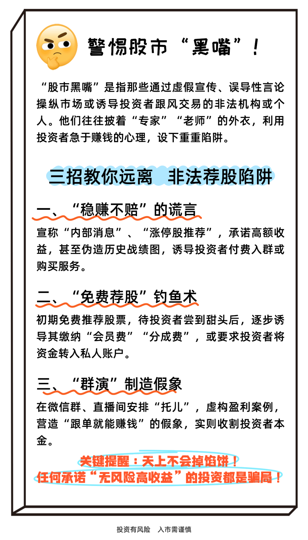 全國防范非法證券期貨基金宣傳月 | 警惕“股市黑嘴” 遠(yuǎn)離非法薦股